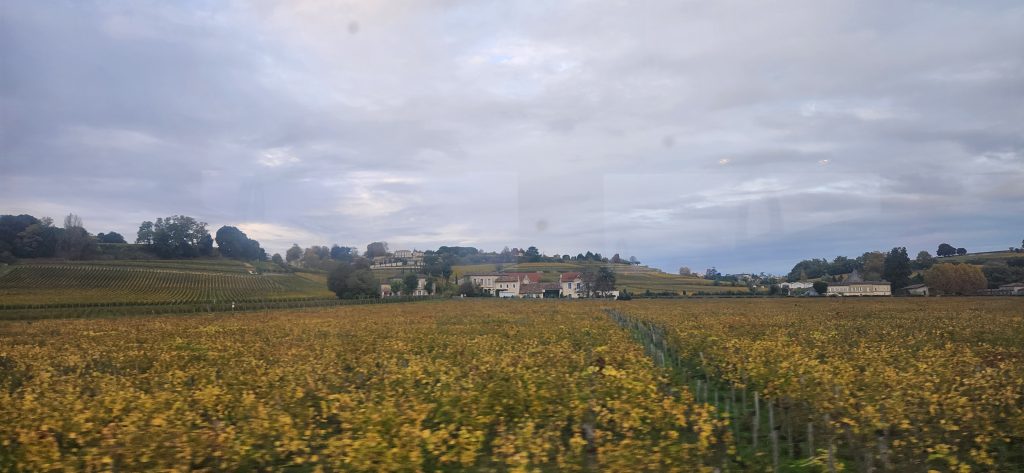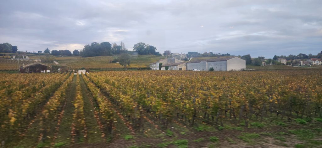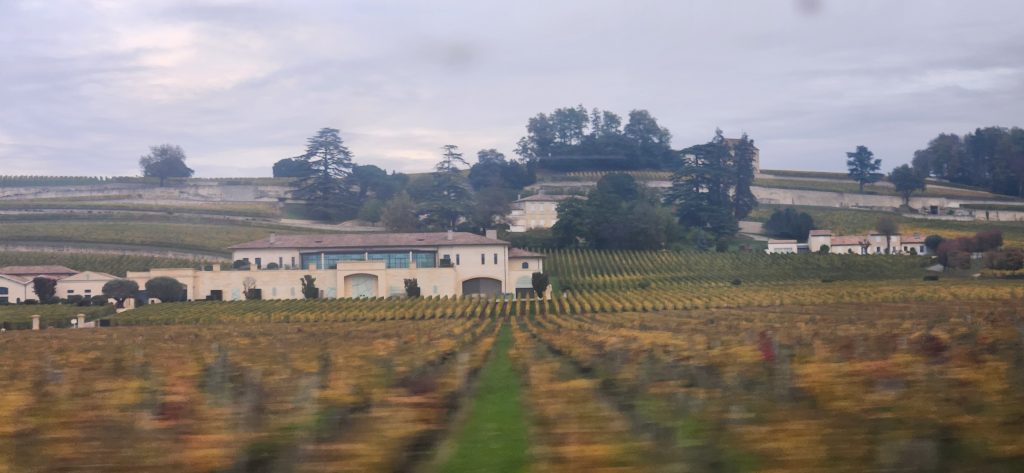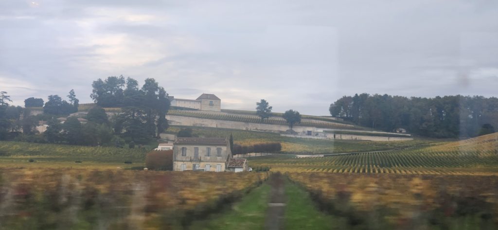 I left Argeles at 8:55am for an hour ride up the coast to Narbonne. I had an hour and a half to transfer to the next train to Bourdeaux St. Jean, so that was good. But, it was very cold and windy, and I had to make a difficult decision….Stand on the platform for over an hour in the cold, or drag/haul my luggage down a long flight of stairs to cross under the tracks and then back up another set of stairs to the train station. Keep in mind that with my shoulder issues, any lifting of my luggage is going to be slow and difficult. The idea of a cup of coffee won out, and I made the trek to the station.