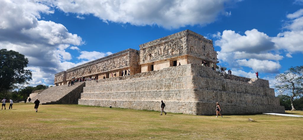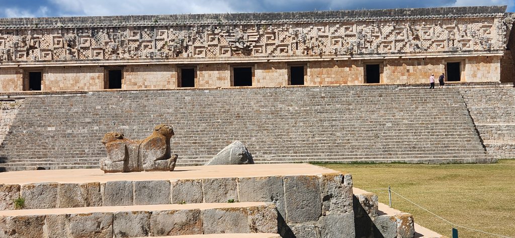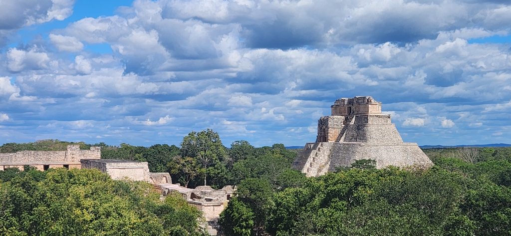 Uxmal and Kabah are two remarkable Maya archaeological sites in Mexico’s Puuc region, celebrated for their intricate stone mosaics and elegant architectural style. Uxmal is the larger and more famous of the two, home to the grand Pyramid of the Magician and richly decorated buildings featuring masks of the rain god Chaac. Kabah, located along the ancient sacbe (Maya road) connecting it to Uxmal, is best known for the Codz Poop, a palace covered with hundreds of Chaac masks. Together, they offer a vivid glimpse into Maya engineering, religious beliefs, and the importance of water in this dry landscape.