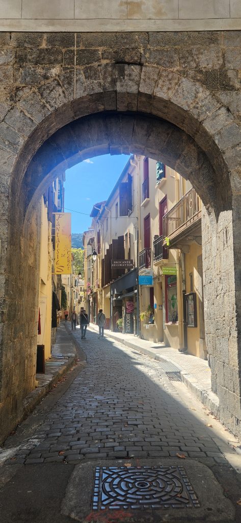 I drove into the beautiful village of Céret, sitting at the base of the Albères Massif (south range in the Pyrenees). This medieval town is full of shady avenues and tall plane trees. The Porte d’Espagne is a relic of the town’s medieval ramparts.
