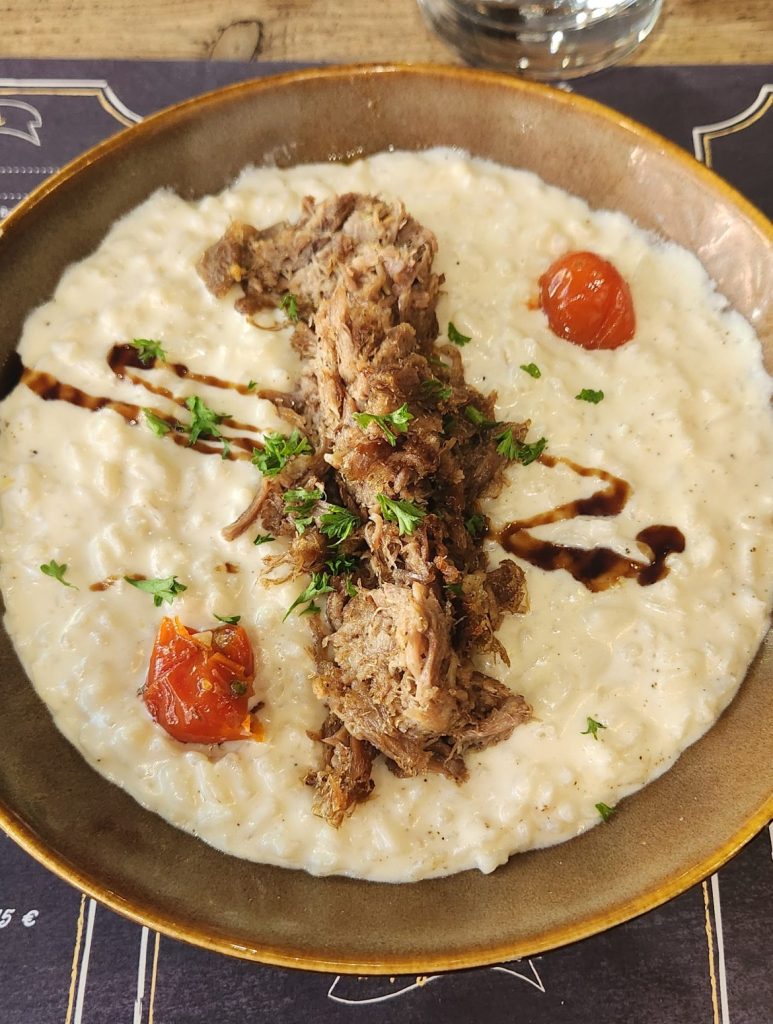After wandering around the village, I went back to the main square where everyone was sitting at outdoor cafes having lunch. I saw duck risotto on one of the restaurant menu and that was all I needed to know about where I would be eating lunch.